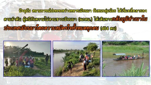 ปัจจุบัน สถานการณ์ปะทะระหว่างทหารเมียนมากับชนกลุ่มน้อย ได้เริ่มคลี่คลายลงตามลำดับ ผู้หนีภัยความไม่สงบชาวเมียนมา (ผภสม.) ได้เดินทางกลับภูมิลำเนาในประเทศเมียนมาโดยความสมัครใจทั้งหมดทุกคน (484 คน) ศูนย์ปฏิบัติการกองทัพภาคที่ 3 จึงขอเรียนให้พี่น้องประชาชนทราบ เพื่อให้เกิดความมั่นใจได้ว่า การบูรณาการกำลังป้องกันชายแดนเพื่อปกป้องอธิปไตย และพิทักษ์ผลประโยชน์ของชาติ จะได้ดำเนินการอย่างเข้มข้น เพื่อให้พี่น้องคนไทยทุกคนมีความปลอดภัยในชีวิตและทรัพย์สิน รวมทั้งสร้างความมั่นคงให้ประเทศชาติสืบไป