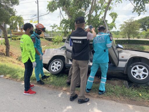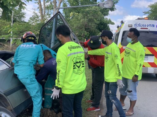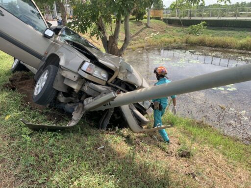 หนุ่มใหญ่ขับรถเก๋งจะไปอู่ทำสีระหว่างคาดโรคประจำตัวกำเริบจนเกิดวูบเสียหลักชนเสาไฟริมทางเสียชีวิตคาที่
