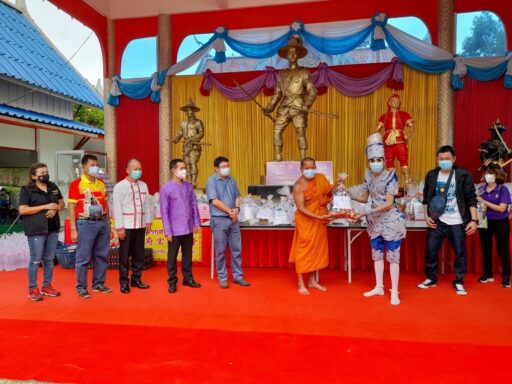 เมื่อเวลา 13.00 น. วันที่ 12 มิถุนายน 2564 ที่ลานด้านหน้าพลับพลารับเสด็จ วัดขวางชัยภูมิ ต.คอรุม อ.พิชัย จ.อุตรดิตถ์ นายสหวิช อภิชัยวิศรุตกุล รอง ผวจ.อุตรดิตถ์ ประธานฝ่ายฆารวาส พระครูพิลาศธรรมสาร เจ้าคณะตำบลคอรุม เจ้าอาวาสวัดขวางชัยภูมิ ประธานฝ่ายสงฆ์ ร่วมกันมอบเครื่องอุปโภค บริโภค “ช่วยครอบครัวลิเก 30 ครอบครัว” พลังบวร ปันน้ำใจ ในสถานการณ์โควิด-19 โดยมี นายสุรพันธ์ เจริญทรัพย์ วัฒนธรรมจังหวัดอุตรดิตถ์ กล่าววัตถุประสงค์การจัดงาน พร้อมด้วย นายสุรศักดิ์ วงศ์ตั้ง นายอำเภอพิชัย นายปรัชญา เสริฐลือชา นายอำเภอลับแล สโมสรโรตารี่ศิลาอาสน์ มูลนิธิการกุศลอุตรดิตถ์ และชมรมลิเกจังหวัดอุตรดิตถ์ นำพลังบวร บ้าน วัด ราชการ ช่วยครอบครัวศิลปินชมรมลิเกจังหวัดอุตรดิตถ์ ที่ได้รับผลกระทบจากสถานการณ์ การแพร่ระบาดของ โควิด-19 โดยมอบสิ่งของ เครื่องอุปโภค และบริโภคให้กับครอบครัวลิเก จำนวน 30 ครอบครัว รวม 11 คณะ เพื่อบรรเทาความเดือนร้อนจากสถานการณ์ปัจจุบันที่งานการแสดงต่าง ๆ ที่ ถูกเลื่อน ลดหรืองดออกไปก่อน