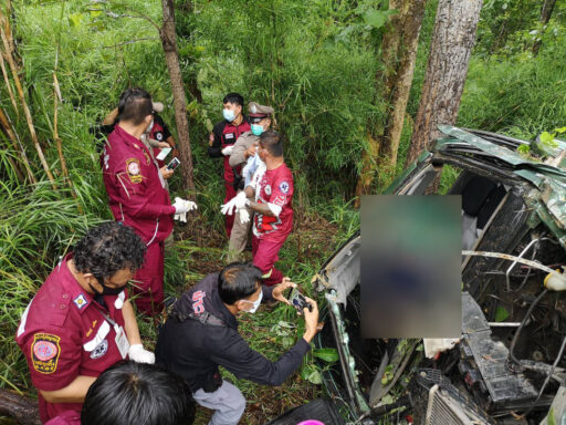 สองพ่อลูกขับรถหลุดโค้งตกข้างทางดับ 1 เจ็บ 1