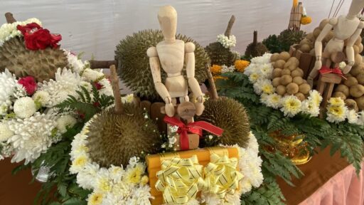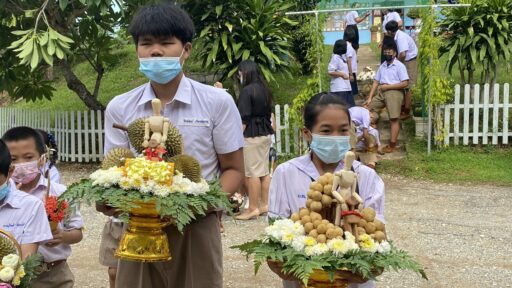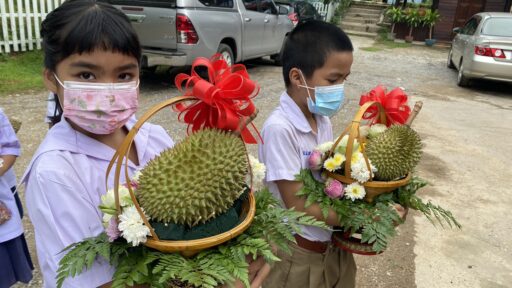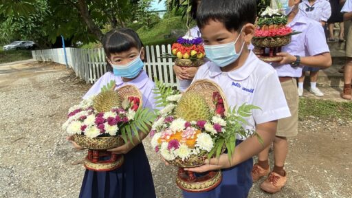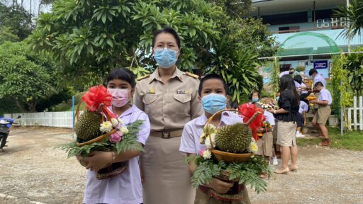 นักเรียนโรงเรียนบ้านห้วยใต้ อ.ลับแลอุตรดิตถ์ ไอเดียเจ๋ง ทำพานทุเรียนหลง-หลินลับแลไหว้ครู