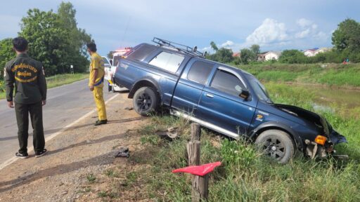 หนุ่มขับบิ๊กไบค์เลยโค้งข้ามเลนชนรถกระบะเสียชีวิต