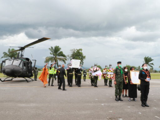 โดยกองทัพภาคที่ 4 ได้กระทำพิธีส่งศพจาก สนาม ฮ. ค่ายเสนาณรงค์ อำเภอหาดใหญ่ จังหวัดสงขลา เพื่อนำส่งศพกลับภูมิลำเนาที่ จ.นครศรีธรรมราช ก่อนนำไปประกอบพิธีทางศาสนา ณ วัดดอนใคร หมู่ที่ 9 ตำบลกลาย อำเภอท่าศาลา จ.นครศรีธรรมราช ต่อไป สำหรับกำหนดการบำเพ็ญกุศลศพ กำหนดพิธีสวดพระอภิธรรมทุกคืน ตั้งแต่ 9 – 11 กรกฎาคม 2564 และกำหนดกระทำพิธีพระราชทานเพลิงศพวันที่ 12 กรกฎาคม 2564