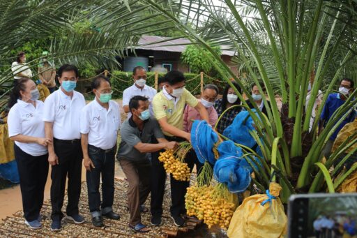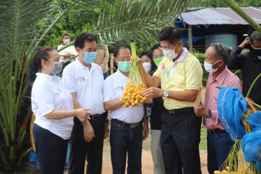 วันที่ 10 กรกฎาคม 2564 ที่สวนอินทผาลัมแสงจันทร์ฟาร์ม หมู่ที่ 1 ต.หอกลอง อ.พรหมพิราม จ.พิษณุโลก นายรณชัย จิตรวิเศษ ผวจ.พิษณุโลก พร้อมด้วย นายสมศักดิ์ ชุ่มแจ่ม นายอำเภอพรหมพิราม นางศศิวัณย์ ศรีพรหม ประธานสภาอุตสาหกรรมท่องเที่ยว จ.พิษณุโลก และนายกสมาคมสหพันธ์ท่องเที่ยวภาคเหนือ จ.พิษณุโลก รวมทั้งสมาชิก เยี่ยมชมความสำเร็จชุมชนท่องเที่ยวเชิงเกษตรและสุขภาพนวัตกรรมเกษตรอัจฉริยะ สวนแสงจันทร์ฟาร์ม ของ นายสมชาย แสงจันทร์ หรือลุงตู้ ในโอกาสนี้ ผวจ.พิษณุโลก ได้เปิดป้ายศูนย์การเรียนรู้การปลูกอินทผาลัมนอกถิ่น ให้กับสวนแสงจันทร์ฟาร์มด้วย ทั้งนี้เนื่องจากสวนอินทผลัมแสงจันทร์ฟาร์มได้รับการรับรองมาตรฐาน GAP เพื่อพัฒนาไปสู่เกษตรอัจฉริยะ สำหรับอินทผาลัมจัดเป็นพืชตระกูลปาล์มชนิดหนึ่งที่หลากหลายสายพันธุ์ เป็นพืชที่สามารถเติบโตได้เป็นอย่างดีในเขตที่มีอากาศร้อนและแห้งแล้งเป็นผลไม้ยอดฮิตสำหรับยุคนี้ ประเทศไทยได้นำอินทผาลัมมาปลูกหลายพื้นที่แต่ผู้บริโภคก็ยังสามารถซื้อรับประทานได้เพราะผลผลิตมีน้อยตลาดที่รับส่วนใหญ่จะเป็นตลาดบนตามห้างสรรพสินค้าและผู้บริโภคที่มาสั่งจองถึงสวนอินทผาลัมมีคุณประโยชน์หลายประการเช่นเป็นผลไม้ที่ไม่มีคอเลสเตอรอลไขมันต่ำอุดมไปด้วยวิตามิน B 1, B 2, B 3, A 1 และ E มีไฟเบอร์สูง บำรุงกระดูกฟันและช่วยให้กระเพาะอาหารแข็งแรง