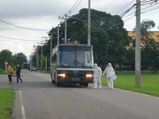 เมื่อเวลา 18.30 น. วันที่ 11 ก.ค. รถบัสไม่ปรับอากาศจำนวน 3 คัน จากหน่วยขึ้นตรงกองทัพภาคที่ 3 ที่ดัดแปลงทำฉากกั้นระหว่างผู้โดยสารและคนขับออกจากกัน เพื่อป้องกันการแพร่กระจายของเชื้อไวรัส Covid-19 พร้อมรถขนส่งสัมภาระของผู้ป่วย และรถพยาบาลที่ติดตามไปด้วย ได้รับผู้ติดเชื้อโรคโควิด-19 ซึ่งเป็นกลุ่มผู้ป่วยสีเขียวจำนวน 19 คน จากกรุงเทพฯ กลับมาเข้าสู่ระบบการรักษายังภูมิลำเนา ตามโครงการ คนไทยไม่ทิ้งกัน ทบ. และ กอ.รมน. พาคนกลับบ้าน หลังจากรัฐบาลประกาศปิดแคมป์คนงานในพื้นที่กรุงเทพฯ และปริมณฑลเป็นระยะเวลา 1 เดือน เพื่อเป็นการตัดวงจรการระบาดของเชื้อไวรัส Covid-19 และสถานที่รักษาในพื้นที่กรุงเทพฯ มีไม่เพียงพอต่อจำนวนผู้ป่วย เพื่อเป็นการแบ่งเบาภาระระบบสาธารณสุขของกรุงเทพฯ และปริมณฑล ได้เดินทางผ่านสี่แยกอินโดจีน ต.สมอแข อ.เมืองพิษณุโลก มุ่งหน้าไปยัง รพ.จิตเวช อ.วังทอง จ.พิษณุโลก เพื่อเข้าระบบรักษาภายในโรงพยาบาลเป็นที่เรียบร้อยแล้ว