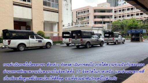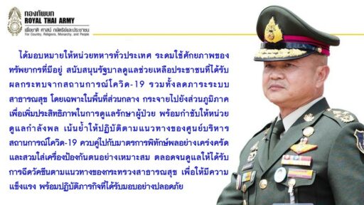 ทั้งนี้การดำเนินการในโครงการฯ ดังกล่าว ยังคงดำเนินการต่อไป ภายใต้ความร่วมมือกับของกองอำนวยการรักษาความมั่นคงภายในจังหวัดทั้ง 17 จังหวัดในภาคเหนือ และส่วนราชการที่เกี่ยวข้อง เพื่อดูแลพี่น้องคนไทยให้ดีที่สุด รวมทั้งร่วมฝ่าฟันวิกฤตนี้ไปด้วยกัน จึงขอเรียนให้พี่น้องประชาชน ในพื้นที่ 17 จังหวัดภาคเหนือ เพื่อให้เกิดความมั่นใจได้ว่า กองทัพบก โดยกองทัพภาคที่ 3 มีความพร้อมที่จะสนับสนุนกำลังพลและยุทโธปกรณ์ทางทหาร รวมทั้งบูรณาการศักยภาพทางการทหารในทุก ๆ ด้านของกองทัพบก เพื่อช่วยเหลือประชาชนให้พ้นจากวิกฤตทุกโอกาส