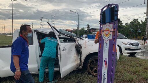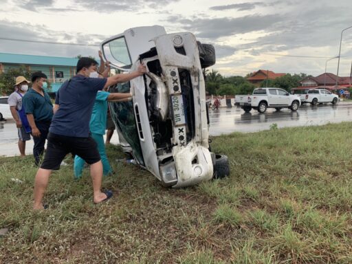 เมื่อเวลา 17.00 น. วันที่ 18 ก.ค. เจ้าหน้าที่หน่วยกู้ภัยมูลนิธิมิตรภาพมงคลธรรม รับแจ้งจากศูนย์วิทยุ 191 พิษณุโลก ว่ามีเหตุรถยนต์เสียหลักตกถนนพลิกคว่ำลงไปอยู่บริเวณเกาะกลางถนนสายเลี่ยงเมืองสี่แยกหนองอ้อ – สี่แยกอินโดจีน ใกล้กับเชิงสะพานยางเอนข้ามแม่น้ำน่าน (ฝั่งตะวันตก) หมู่ 6 ต.ท่าโพธิ์ อ.เมือง จ.พิษณุโลก มีผู้ได้รับบาดเจ็บติดอยู่ภายในรถ ไปตรวจสอบพบชาวบ้านกำลังช่วยกันพยายามพลิกรถยนต์กระบะ ยี่ห้อ โตโยต้า สีขาว หมายเลขทะเบียน บท 3020 พิษณุโลก ที่คว่ำตะแคงอยู่ เจ้าหน้าที่กู้ภัยจึงเข้าไปช่วยเหลือจนสามารถพลิกรถได้สำเร็จ ก่อนรีบนำตัวผู้บาดเจ็บที่อยู่ภายในรถออกมาปฐมพยาบาลเบื้องต้น และนำส่งให้แพทย์รักษาอาการบาดเจ็บที่โรงพยาบาลมหาวิทยาลัยนเรศวร