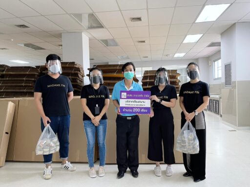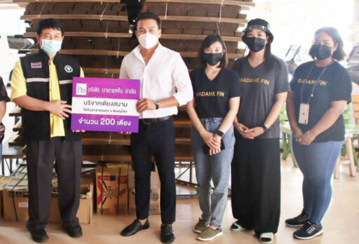 มาดามฟินมอบเตียงกระดาษให้ รพ.สนามและมอบเงินช่วยเหลือ