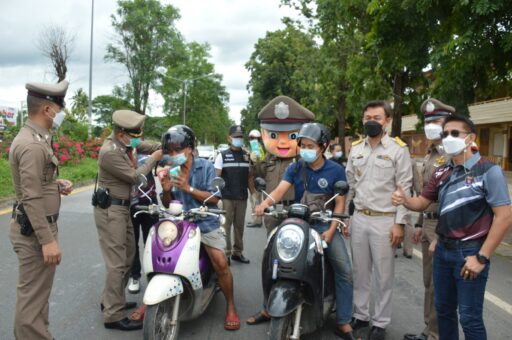 แจกหมวกนิรภัยแทนค่าปรับ