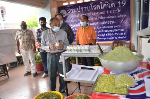 วันที่ 1 ส.ค.564 ผู้สื่อข่าวรายงานว่า ที่บ้านเลขที่ 5 ซอยพิศาลสุขหรือซอยพัฒนาการคูขวาง 54 ต.ในเมือง อ.เมือง จ.นครศรีธรรมราช ซึ่งเป็นที่ตั้งของสำนักงานมูลนิธิแสนคมอุทิศธรรม และเป็นแหล่งผลิตยาฟ้าทะลายโจรชื่อดังในพื้นที่ นายวิโรจน์ ขวัญเกื้อ ประธานมูลนิธิฯ และ นายธนา รุ่งนิรันดรกุล รองประธานมูลนิธิฯ พร้อมคณะกรรมการมูลนิธิฯ ร่วมแถลงเปิดตัวกิจกรรม “ปราบโรคโควิด – 19 แจกฟ้าทะลายโจรคนละ 1 กระปุ๊ก” ให้กับประชาชนฟรี