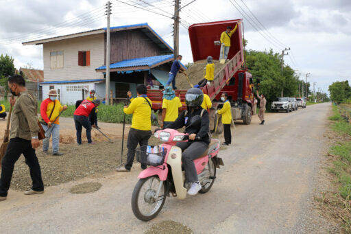 อบจ.พิษณุโลก ซ่อมแซมถนนสายเลียบทางรถไฟบ้านเต็งหนาม หลังฝนตกหนักและมีรถใช้สัญจรไปมาจำนวนมากจนชำรุด เพื่อแก้ปัญหาความเดือดร้อนให้ประชาชนเบื้องต้น