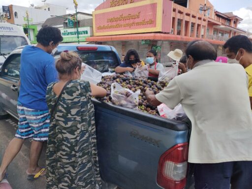 พระเมืองคอนฝ่าโควิดช่วยซื้อมังคุดชาวสวน 2 ตัน แจกชาวบ้านฟรีหน้าวัดพระมหาธาตุฯ และจัดส่งให้ผู้ร่วมทำบุญทางออนไลน์ด้วย พร้อมทำนำมังคุด ทุเรียน แปรรูป “รสพระธรรม” จำหน่าย ช่วยเกษตรกร