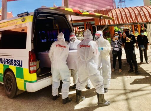 เมื่อเวลา 09.00 น. วันที่ 9 ส.ค.2564 เจ้าหน้าที่หน่วยกู้ภัยมงคล มูลนิธิมิตรภาพมงคลธรรม (ท่าทอง) พิษณุโลก ได้รับการประสานจากโรงพยาบาลพุทธชินราชและญาติของผู้เสียชีวิต ให้ไปรับศพ นายสมชาย สุกใส อายุ 55 ปี มีภูมิลำเนาอยู่ที่บ้านห้วยแก้ว หมู่ 14 ต.หนองกะท้าว อ.นครไทย จ.พิษณุโลก ซึ่งเสียชีวิตเมื่อเวลาประมาณ 15.15 น. วันที่ 8 ส.ค.2564 ด้วยโรคติดเชื้อไวรัสโคโรนา 2019 ที่แผนกนิติเวชโรงพยาบาลพุทธชินราช นำไปฌาปนกิจศพที่วัดยางเอน ต.ท่าโพธิ์ อ.เมือง จ.พิษณุโลก ตามมาตรการของกระทรวงสาธารณสุข โดยผู้ป่วยติดเชื้อโควิด-19 มีอาชีพขับรถสิบล้อเดินทางมาจาก จ.สุพรรณบุรี ซึ่งหมดสติขณะขับรถบรรทุกสิบล้ออยู่บริเวณบนถนนหน้าโรงพยาบาลสมเด็จพระยุพราชนครไทย แพทย์พบมีอาการโคม่าจึงส่งตัวต่อให้แพทย์โรงพยาบาลพุทธชินราชทำการรักษาได้เพียง 2 วัน จนเสียชีวิตในที่สุดด้วยอาการปอดอักเสพจากเชื้อโควิด-19 ส่วนบุคคลในครอบครัวรวม 3 คนมีความเสี่ยงสูงกักตัวอยู่บ้านพัก รอรถโรงพยาบาลไปรับเพื่อตรวจหาเชื้อเร่งด่วน สำหรับผู้เสียชีวิตรายนี้นับเป็นผู้เสียชีวิตจากการติดเชื้อโควิด-19 เป็นรายที่ 9 ของจังหวัดพิษณุโลก