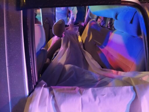 รถกระบะวิ่งฝ่าสายฝนชนเสาไฟฟ้าเสียชีวิต 2 สาหัส 1