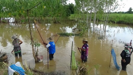 ฝนบนเทือกเขาเพชรบูรณ์ยังหลากท่วมขังในพื้นที่ ต.ไทรย้อย อ.เนินมะปราง เช้าวันนี้น้ำลดลงเล็กน้อย ส่วนที่ ต.บ้านกลาง อำเภอวังทอง จังหวัดพิษณุโลก น้ำท่วมพื้นที่ไร่นา ชาวบ้านออกหาปลา