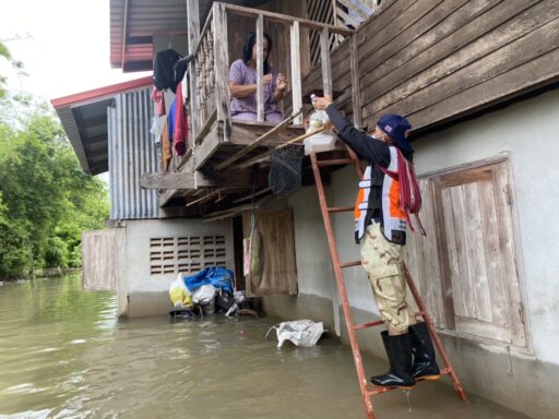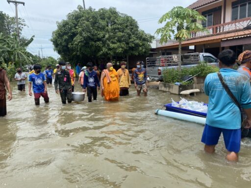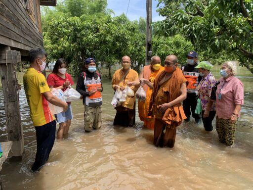 เมื่อเวลา 11.00 น. วันที่ 12 ก.ย. ผู้สื่อข่าวรายงานว่า สถานการณ์น้ำท่วมในจังหวัดพิษณุโลก มวลน้ำจากเทือกเขาเพชรบูรณ์ ยังท่วมในพื้นที่ ต.ไทรย้อย อ.เนินมะปราง และ บางส่วนของพื้นที่ ต.บ้านกลาง อ.วังทอง โดยเฉพาะที่ หมู่ 13 บ้านวังน้ำบ่อ ต.ไทรย้อย อ.เนินมะปราง มีบ้านเรือนประชาชนที่อยู่ในพื้นที่ลุ่มต่ำถูกน้ำท่วมจำนวนหลายหลังคาเรือน ตั้งแต่เช้าเมื่อวานที่ผ่านมา วันนี้ระดับน้ำลดเหลือเพียง 10 – 20 ซม. เท่านั้น เบื้องต้น พระครูสุภัทรกิจวิบูลย์ (หลวงพ่อขวัญ) เจ้าอาวาสวัดเนินมะปราง พร้อมคณะสงฆ์อำเภอเนินมะปราง และ นายทวีศักดิ์ ล่อกา ปลัดอำเภอหัวหน้าฝ่ายความมั่นคง อ.เนินมะปราง ซึ่งได้รับมอบหมายจาก นายรณชัย จิตรวิเศษ ผวจ.พิษณุโลก และนายอำเภอเนินมะปราง ร่วมกับคณะญาติโยมที่ศรัทธา เปิดโรงทานทำอาหารออกแจกจ่ายให้กับชาวบ้านที่ได้รับผลกระทบเป็นการเบื้องต้น ที่บ้านวังน้ำบ่อ หมู่ 13 ต.ไทรย้อย จำนวน 30 ครัวเรือน 80 คน โดยมีเจ้าหน้าที่กู้ภัยสมาคมกู้ภัยข่าวภาพ จุดอำเภอเนินมะปรางคอยอำนวยความสะดวก และคาดว่าภายใน 1 – 2 วันนี้ หากไม่มีฝนตกลงมาอีกน้ำคงลดระดับจนเป็นปกติ