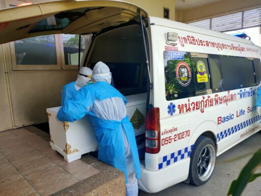 เมืองสองแควผู้ป่วยติดเชื้อโควิดตายเพิ่มอีก 1 ราย เจ้าหน้าที่กู้ภัยนำศพไปเผาที่วัดสระแก้วปทุมทอง ยอดผู้ป่วยสะสมถึงวันที่ 19 ก.ย.อยู่ที่ 4,347 ราย รักษาหาย 3,758 ราย รักษาอยู่ 544 ราย เสียชีวิตสะสมล่าสุด 46 ราย