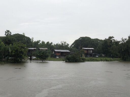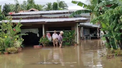 น้ำจากแม่น้ำวังทองและแม่น้ำยมเอ่อล้นท่วมบ้านและไร่นาในพื้นที่ต่ำ