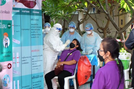 ตรวจคัดกรองหมอนวด ชมรมนวดแผนไทย สวนชมน่าน ด้วยชุดตรวจ ATK ก่อนเปิดลานนวดให้ประชาชนเข้าใช้บริการ พร้อมจัดสถานที่เน้นเว้นระยะห่างและปฏิบัติตามมาตรการสาธารณสุข