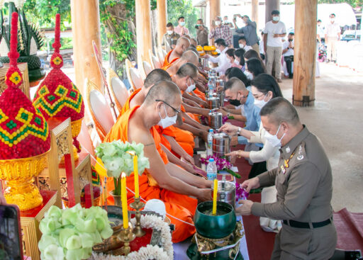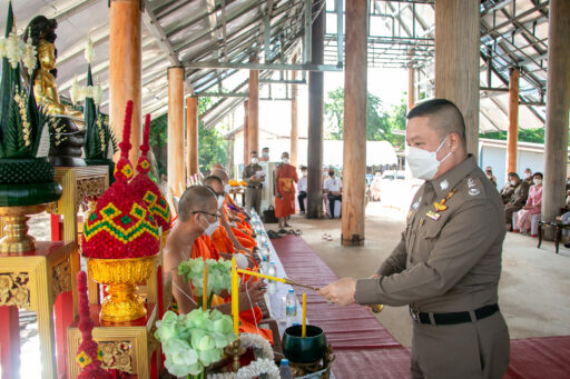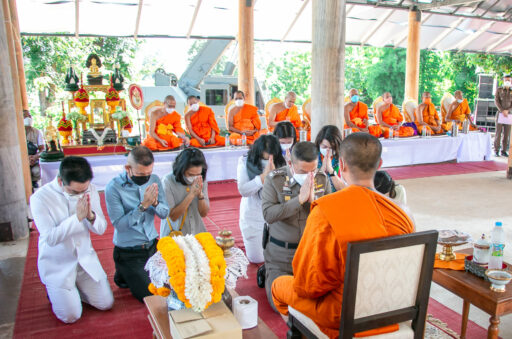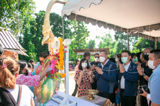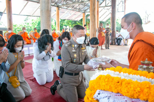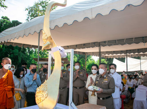 “บิ๊กอ้อ” พร้อมภริยาร่วมพิธียกช่อฟ้าเอกที่วัดศรีเจริญโพธิ์ทอง