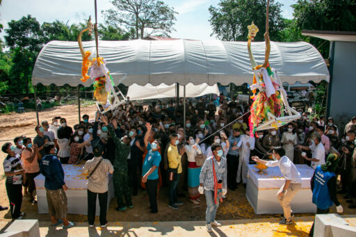 ราชการหลายภาคส่วนร่วมกับชาวบ้านสะอักและประชาชนใน ต.ดอนทอง ประกอบพิธียกช่อฟ้าเอก วิหารพระศรีสรรเพชร ที่ทางวัดบูรณะใหม่