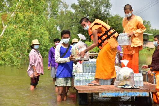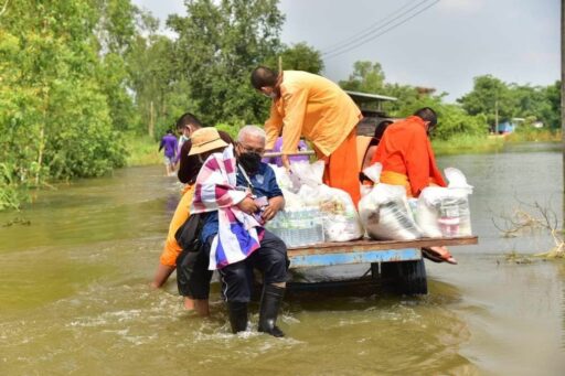 บางระกำยังอ่วมคณะสงฆ์วัดใหญ่ช่วยผู้ประสบภัยต่อเนื่อง