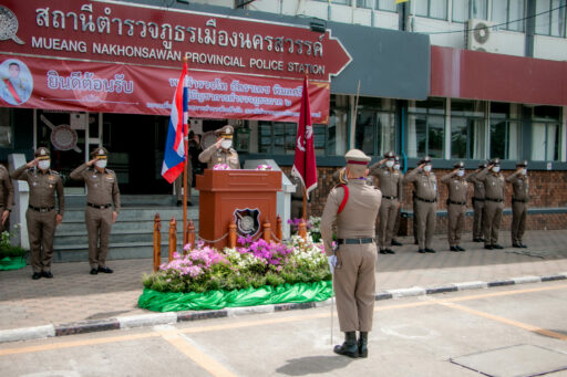สำหรับการตรวจเยี่ยมของ พล.ต.ท.อัคราเดช พิมลศรี ผบช.ภ.6 ข้าราชการตำรวจในสังกัด ภ.จว.นครสวรรค์ ได้แสดงความเคารพโดยกองเกียรติยศที่บริเวณหน้า สภ.นครสวรรค์ ในโอกาสเดียวกันนี้ ผบช.ภ.6 ได้มอบของที่ระลึก หน้ากากอนามัย เจลแอลกอฮอล์ และเครื่องดื่ม เพื่อเป็นขวัญและกำลังใจในการปฏิบัติหน้าที่แก่ข้าราชการตำรวจของ สภ.นครสวรรค์ ด้วย