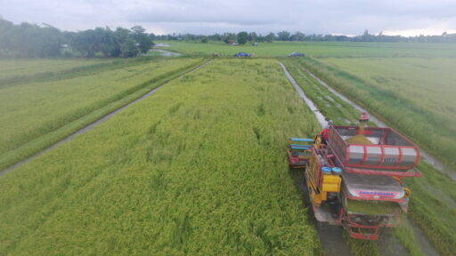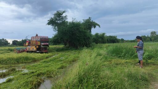 ชาวนาจำใจเกี่ยวข้าวหนีน้ำหวั่นพายุระลอกใหม่