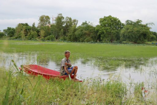 นายเมธาวี เปิดเผยต่อว่า เมื่อวานนี้ได้ว่าจ้างรถแบ็คโฮ มาทำคันกั้นน้ำและติดตั้งเครื่องสูบน้ำจำนวน 3 เครื่องเพื่อระบายน้ำออกจากนา หวังจะยืดอายุต้นข้าวให้ถึงช่วงเก็บเกี่ยว แต่เมื่อคืนที่ผ่านมาต่อเนื่องถึงวันนี้ยังคงมีฝนตกหนักในพื้นที่ ทำให้แนวคันดินพังเครื่องสูบน้ำจมน้ำ คาดว่าจากอิทธิพลพายุคมปาซุ และกลัวพายุอีก 2 ลูกที่จะเข้ามาสมทบด้วย จึงต้องว่าจ้างรถเกี่ยวข้าวเข้ามาเก็บเกี่ยวก่อนกำหนด ดีกว่าปล่อยทิ้งให้จมน้ำ ส่วนข้าวที่เกี่ยวได้ก็เป็นข้าวคุณภาพต่ำ ความชื้นจะสูงเนื่องจากเกี่ยวก่อนกำหนด ก็คงจะต้องถูกตัดราคา ไม่น่าถึงตันละ 5,000 บาท ก็ต้องยอม ขอเกี่ยวข้าวถอนทุนคืน ยังดีกว่านาข้าวเสียหายไปทั้งหมด ไม่ได้อะไรเลย