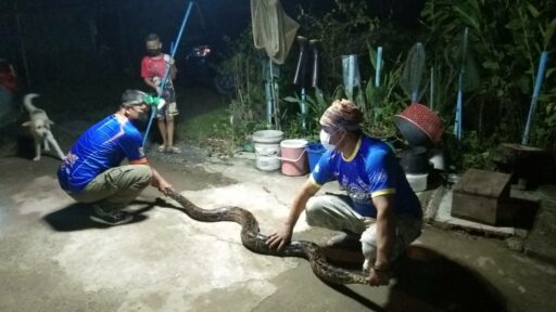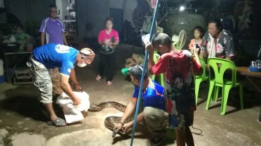 งูหลามบุกกินพ่อแม่พันธุ์หนูนาแจ้งกู้ภัยจับปล่อยคืนสู่ธรรมชาติ