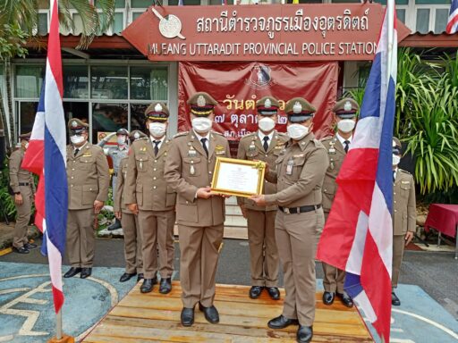 ตำรวจเมืองอุตรดิตถ์ทำบุญตักบาตรข้าวสารอาหารแห้งและมอบเกียรติบัตรข้าราชการตำรวจที่ปฏิบัติงานดีเด่น เนื่องในวันตำรวจปี 2564