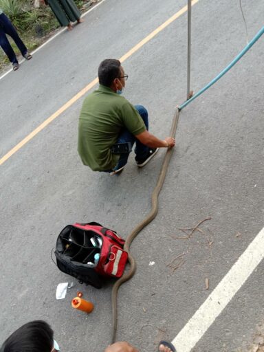 ชื่นชม…กู้ภัยแกะเห็บจากตัวงูจงอาง