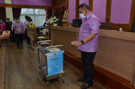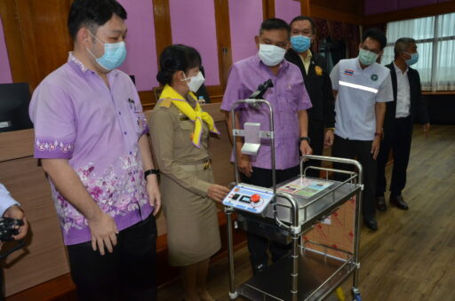 เมื่อเวลา 14.00 น. วันที่ 9 พ.ย.2564 ที่ห้องประชุมศรีวิชัย ชั้น 5 ศาลากลางจังหวัดนครศรีธรรมราช นายไกรศร วิศิษฎ์วงศ์ ผวจ.นครศรีธรรมราช ได้รับมอบหุ่นยนต์ส่งยาเวชภัณฑ์และอาหารที่ควบคุมด้วยรีโมทวิทยุและโทรศัพท์มือถือให้กับผู้ป่วยโควิดที่รักษาตัวใน รพ.สนาม อ.พระพรหม จำนวน 1 เครื่องมูลค่า 2หมื่นบาท โดยมี ดร.พันธ์เพ็ญ โพธิ์ใบ ผอ.วิทยาลัยการอาชีพนครศรีธรรมราชพร้อมด้วยอาจารย์และนักศึกษาแผนกช่างอิเลคทรอนิคส์ นำมาส่งมอบให้กับ ผวจ.นครศรีธรรมราช จากนั้น จากนั้นได้ ผวจ.นครศรีธรรมราชได้ส่งมอบหุ่นยนต์ตัวดังกล่าวต่อให้กับ นพ.พิศาล ถาวรวงศ์ ผอ.รพ.พระพรหม เพื่อนำไปใช้ประโยชน์ในการส่งยาเวชภัณฑ์และอาหารให้กับผู้ป่วยโควิดที่รักษาตัวใน รพ.สนาม อ.พระพรหมต่อไป เพื่อเป็นการหลีกเลี่ยงการสัมผัสกับผู้ป่วยโควิด สร้างความปลอดภัยให้กับบุคคลากรทางการแพทย์ในการทำหน้าที่รักษาผู้ป่วยโควิด