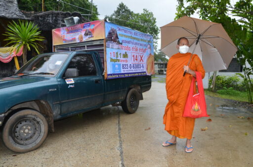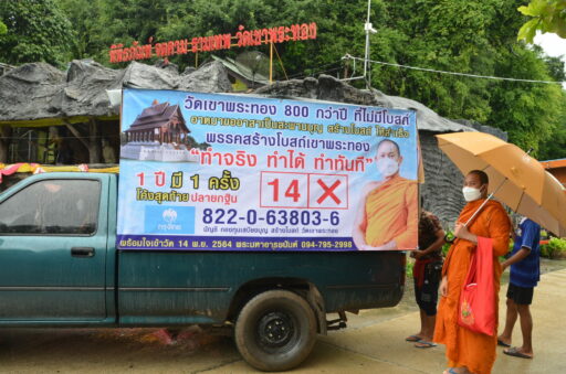 รถแห่ป้ายเชิญชวนญาติโยมเข้าวัดร่วมทอดกฐินสามัคคี เพื่อสร้างโบสถ์ ขับเคลื่อนไปตามถนนภายในหมู่บ้าน ซึ่งได้รับความสนใจจากชาวบ้านในพื้นที่อย่างมากในช่วงการหาเสียงของผู้สมัครนายกและสมาชิก อบต.ทั่วประเทศ