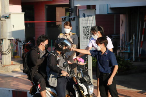 คณะผวจ.พิษณุโลก ได้ตรวจมาตรการคัดกรองตั้งแต่ทางเข้าประตูโรงเรียน ที่ครูและนักเรียนจะจัดจุดตรวจวัดอุณหภูมิทุกคน กำหนดให้ล้างมือด้วยแอลกอฮอล์ จากนั้น คณะผวจ.พิษณุโลกได้ขึ้นกล่าวถึงสถานการณ์โควิดกับนักเรียนที่หน้าเสาธง โดยเน้นย้ำว่าให้ทุกตนต้องมีการป้องกันตนเองอย่างเต็มที่ การที่นักเรียนและครูส่วนใหญ่ได้รับวัคซีนสองเข็มแล้ว ทำให้มีความมั่นใจมากขึ้น ถ้าหากมีการติดเชื้อ ก็จะไม่เจ็บหนักหรือมีอาการรุนแรง อีกทั้งคณะกรรมการควบคุมโรคจังหวัดมีมาตรการรองรับสถานการณ์หากมีการตรวจพบผู้ติดเชื้อในโรงเรียน นอกจากนี้ ยังมีมาตรการให้ฟาวิพิราเวียร์ทันทีเมื่อตรวจพบว่าติดเชื้อ เพราะปัจจุบันมียาอยู่อย่างพอเพียง ขณะที่สถานการณ์การพบผู้ติดเชื้อรายใหม่ของจังหวัดพิษณุโลก เมื่อวานนี้ยอดลงลงบ้างแล้ว พบผู้ติดเชื้อรายใหม่ 72 ราย จากช่วงสัปดาห์ที่ผ่านพบผู้ติดเชื้อรายใหม่ 80-90 ราย