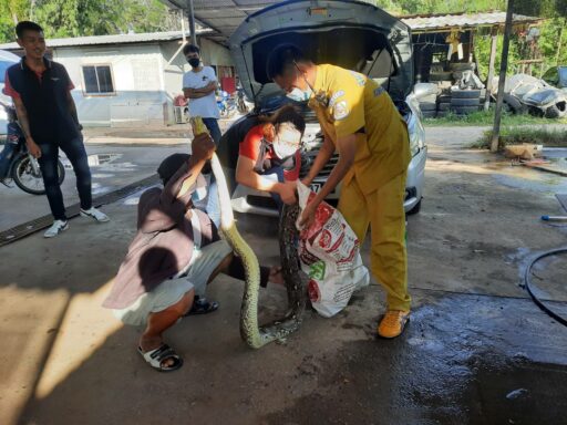 เมื่อวันที่ 23 พ.ย. ผู้สื่อข่าวรายงานว่า ศูนย์วิทยุสมาคมกู้ภัยข่าวภาพได้รับแจ้งขอความช่วยเหลือจากประชาชน ขอกำลังเจ้าหน้าที่ชำนาญการในการจับสัตว์เลื้อยคลาน ให้ไปช่วยจับงูขนาดใหญ่ที่อยู่ในรถยนต์ ที่ร้านมากมีออลคาร์เซอร์วิส ซึ่งเป็นร้านจำหน่ายรถยนต์มือสอง ตั้งอยู่เลขที่ 365/5 หมู่ 7 ต.สมอแข อ.เมือง จ.พิษณุโลก จึงมอบหมายให้ นายวีรเชษฐ์ เขียวบาง เจ้าหน้าที่กู้ภัยข่าวภาพนำอุปกรณ์ไปช่วยเหลือประชาชนตามที่ได้รับการร้องขอ เบื้องต้นพบเป็น งูเหลือมขนาดใหญ่ ยาวประมาณ 3 เมตร ขดตัวอยู่ในห้องเครื่องรถยนต์โตโยต้า แคมรี่ สีบรอนซ์เงิน หมายเลขทะเบียน ขง 9237 ภูเก็ต เจ้าหน้าที่กู้ภัยและพนักงานในร้านจึงช่วยกันจับงูออกจากห้องเครื่องรถยนต์