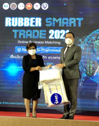 การเจรจาธุรกิจ Pre-Post Matching และจัด Mini-Showcase”ภายใต้โครงการพัฒนาอุตสาหกรรมการผลิตยางพาราและปาล์มน้ำมันอย่างครบวงจร ประจำปีงบประมาณ พ.ศ. 2564 มีวัตถุประสงค์ เพื่อสร้างมูลค่าเพิ่ม ขยายโอกาสและช่องทางการตลาดใหม่ๆ ให้แก่ผู้ประกอบการสินค้ายางพารา ไม้ยางพารา และผลิตภัณฑ์เกี่ยวเนื่อง ในจังหวัดนครศรีธรรมราช การจัดกิจกรรมวันนี้ มีผู้ประกอบการสินค้ายางพารา ไม้ยางพารา และผลิตภัณฑ์เกี่ยวเนื่อง ในจังหวัดนครศรีธรรมราช เข้าร่วมกิจกรรม จำนวน 12 ราย และผู้นำเข้าในต่างประเทศ เข้าร่วมเจรจาการค้าผ่านช่องทางออนไลน์ (Online Business Matching) จำนวน 10 ราย มีคู่เจรจาการค้า 48 คู่ค้า จาก 3 ประเทศ ได้แก่ สาธารณรัฐอินเดีย มาเลเซีย และ ญี่ปุ่น นอกจากนี้ มีกิจกรรมนำเสนอสินค้า (Mini-Showcase) และไลฟ์สดประชาสัมพันธ์สินค้า เพื่อให้เกิดการซื้อขายจริง อีกทั้งมีคลินิกบริการให้คำปรึกษาด้านการค้าออนไลน์ โดยผ่านระบบ ZOOM จากกรมส่งเสริมการค้าระหว่างประเทศ ให้บริการตลอดการจัดกิจกรรม