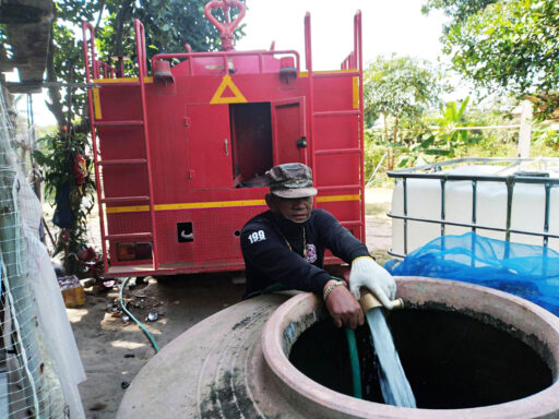 โดยวันนี้เจ้าหน้าที่ได้นำรถบรรทุกน้ำออกไปแจกจ่ายให้ตามบ้านเรือนราษฎรที่ขาดแคลนน้ำอุปโภคบริโภคได้กักเก็บน้ำไว้ใช้อุปโภคบริโภคภายในครัวเรือนของตนเอง จำนวนทั้งสิ้น 72,000 ลิตร เพื่อบรรเทาปัญหาความเดือดร้อนเบื้องต้นให้แก่ราษฎร.
