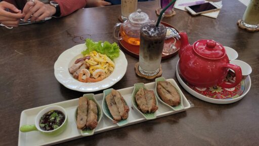 หากได้แวะเข้าไปที่ร้านแห่งนี้ ห้ามพลาดเมนูซิกเนเจอร์ “กวงเจียง” อาหารโบราณชาวจีนแต้จิ๋วสืบทอดมานานกว่า 100 ปี รวมทั้งอาหารจีนอีกหลายหลายเมนู นั่งทานกันชิว ๆ ท่ามกลางบรรยากาศของร้านสไตล์จีนแบบครอบครัว ต้นตำรับอาหารสืบทอดมาจากเหล่าก๋ง-เหล่าม่า โดยปรับร้านมาจากร้านโชห่วยสู่ร้านกาแฟและอาหารจีน เป็นที่รู้จักกันอย่างดีย่านตลาดใต้หรือตลาดเทศบาล 1