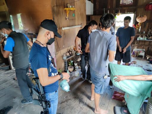 เมื่อเวลา 13.00 น. วันที่ 8 ธ.ค.2564 พล.ต.ท.จิรภพ ภูริเดช ผบช.ก.และ พล.ต.ต.ภูมินทร์ พุ่มพันธุ์ม่วง ผบก.ปพ. สั่งการให้ตำรวจชุดคอมมานโด และตำรวจ สภ.ท่าศาลา ไปตรวจสอบที่บ้านไม่มีเลขที่ ใกล้สะพานบางรี หมู่ 15 ต.ท่าศาลา อ.ท่าศาลา จ.นครศรีธรรมราช เนื่องจากสืบทราบว่า นายพุฒิศักดิ์ ยางแก้ว อายุ 33ปี หรือฉายา “ปั๊ม บ้านบนถนน” มีพฤติกรรมลักลอบจำหน่ายยาเสพติดให้กับวัยรุ่นในหมู่บ้านมานานแล้ว เมื่อไปถึงพบนายพุฒิศักดิ์หรือปั๊ม บ้านบนถนน นั่งเล่นอยู่บนบ้านไม้ยกสูงชั้นเดียว พอเห็นตำรวจนายพุฒิศักดิ์แสดงอาการพิรุธตกใจ พยายามจะวิ่งหลบหนีแต่ไม่ทัน ถูกกำลังตำรวจชุดคอมมานโดบุกประชิดตัวจับกุม ได้เสียก่อน