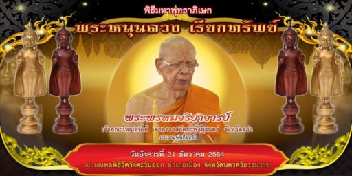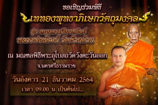 ทั้งนี้ สืบเนื่องจาก“พระครูนิวิฐปุญญากร” หรือ “หลวงพ่อพัฒน์ ปุญญกาโม” หรือพระราชมงคลวัชราจารย์ เจ้าอาวาสวัดหวยด้วน อายุ 100 ปี เป็นพระเกจิอาจารย์ผู้ทรงวิทยาคมในลำดับต้น ๆ ของเมืองไทยในปัจจุบัน เป็นพระภิกษุสงฆ์ที่ปฏิบัติดีปฏิบัติชอบเป็นที่รู้จักและเสื่อมใสศรัทธากันอย่างกว้างขวาง มีคณะศิษยานุศิษย์ทั้งในและต่างประเทศเป็นจำนวนมาก และเป็นผู้ที่อุทิศตนแด่พระพุทธศาสนา สร้างสิ่งที่เป็นสาธารณประโยชน์และคุณูปการให้กับสังคมไทยมากมาย จนได้รับพระมหากรุณาโปรดเกล้าฯ พระราชทานตั้งสมณศักดิ์จากพระบาทสมเด็จพระวชิรเกล้าเจ้าอยู่หัว ในหลวงรัชกาลที่ 10 ขึ้นเป็น “พระราชมงคลวัชราจารย์” เมื่อวันที่ 7 พ.ค. 2564 ที่ผ่านมา จะเดินทางไปเป็นประธานฝ่ายสงฆ์ หรือ “เจ้าพิธี” ซึ่งเป็นครั้งแรกในประวัติศาสตร์ที่หลวงพ่อพัฒน์ เดินทางไปจังหวัดนครศรีธรรมราช โดยมี นางกนกพร เดชเดโช นายก อบจ.นครศรีธรรมราช เป็นประธานฝ่ายฆราวาสและคณะให้การต้อนรับ
