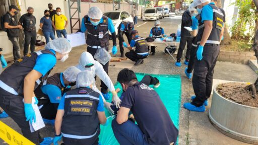 พนักงานสอบสวนจึงประสานตำรวจกลุ่มงานตรวจสถานที่เกิดเหตุ ศูนย์พิสูจน์หลักฐาน 6 พร้อมแพทย์เวร โรงพยาบาลมหาวิทยาลัยนเรศวร และเจ้าหน้าที่สมาคมกู้ภัยข่าวภาพมาร่วมตรวจสอบ เมื่อเข้าไปภายในห้องได้เจ้าหน้าที่ตำรวจจึงได้ร่วมกันตรวจที่เกิดเหตุก่อนนำร่างผู้เสียชีวิตออกมาชันสูตรนอกห้อง ทราบชื่อผู้เสียชีวิตคือ นายวิษณุ เวชชูชีพ อายุ 29 ปี อยู่บ้านเลขที่ 63/2 หมู่ 6 บ้านน้ำโจน ต.วังหิน อ.เมือง จ.ตาก เป็นเจ้าหน้าที่ธุรการของมหาวิทยาลัยเทคโนโลยีราชมงคลล้านนา ตาก สภาพศพสวมเสื้อยืดกีฬาสีน้ำเงิน นุ่งกางเกงขายาวสีดำ เบื้องต้นไม่พบบาดแผลหรือร่องรอยของการถูกทำร้าย มีทรัพย์สินของมีค่าอยู่ครบ คาดว่าเสียชีวิตมาแล้วไม่ต่ำกว่า 8 ชั่วโมง