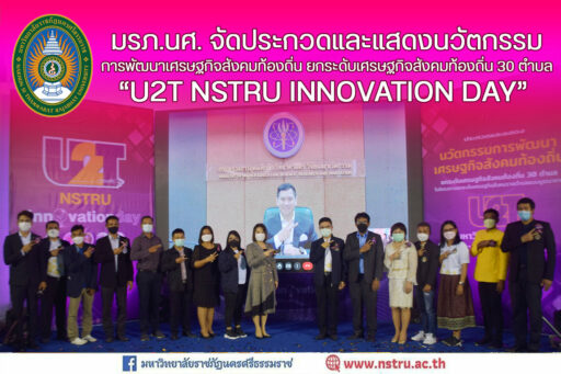 เมื่อวันที่ 15 ธันวาคม 2564 ผศ.ดำรงค์พันธ์ ใจห้าววีระพงศ์ ผช.อธิการบดี มรภ.นครศรีธรรมราช เปิดเผยว่า ศูนย์สืบสานงานพระราชดำริ และพัฒนาเศรษฐกิจฐานราก มหาวิทยาลัยราชภัฏนครศรีธรรมราช ได้จัดงาน “U2T NSTRU Innovation Day” ประกวดและแสดงนวัตกรรมการพัฒนาเศรษฐกิจสังคมท้องถิ่น ยกระดับเศรษฐกิจสังคมท้องถิ่น 30 ตำบล โครงการยกระดับเศรษฐกิจสังคมรายตำบลแบบบูรณาการ (U2T มหาวิทยาลัยสู่ตำบล สร้างรากแก้วให้ประเทศ) ที่ห้องประชุม 3820 มหาวิทยาลัยราชภัฏนครศรีธรรมราช และระบบ ZOOM Cloud Meetings โดยมี รศ.(พิเศษ) ดร.ดวงฤทธิ์ เบ็ญจาธิกุล ชัยรุ่งเรือง เลขานุการรัฐมนตรีว่าการและโฆษกกระทรวงการอุดมศึกษา วิทยาศาสตร์ วิจัยและนวัตกรรม (อว.) เป็นประธานในพิธีเปิด