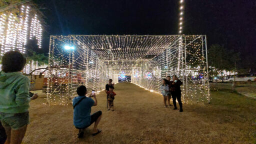 ซึ่งในการประดับไฟนั้นก็จะเป็นจุดหลักของการจัดงาน คือ บริเวณสวนกลางเมือง ที่มีต้นคริสต์มาสสูงกว่า 30 เมตร มีอุโมงค์ไฟ การประดับไฟเป็นรูปทรงต่าง ๆ สวยงาม และมีจุดถ่ายรูปเช็คอินกันอย่างสวยงาม นอกจากนี้ บริเวณวงเวียนหน้าสถานีรถไฟ มีการประดับไฟรูปหมีถือของขวัญสวยงามด้วย ส่วนที่วงเวียนหอนาฬิกา มีการประดับไฟเป็นรูปกวางเรนเดียร์รอบ ๆ วงเวียน เพื่อให้ชาวเมืองสองแควได้ให้มาถ่ายรูปมุมสวย ๆ เช่นกัน นอกจากนี้ก็ยังมีการประดับไฟบริเวณตามจุดและถนนต่าง ๆ รอบเมืองพิษณุโลก