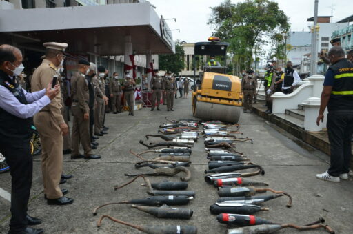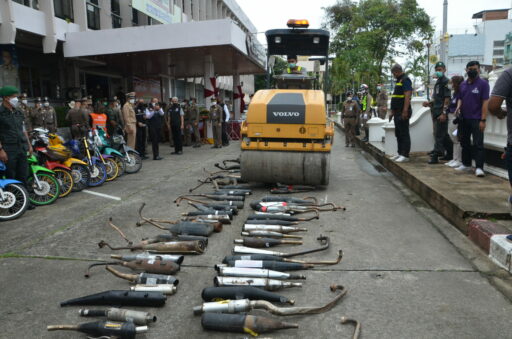 จากนั้น พล.ต.ท.อำพล บัวรับพร ผบช.ภ.8 ได้เป็นประธานใช้รถบดทำการบดเหยียบทำลายท่อไอเสียแต่งซิ่งที่ตรวจยึดมาได้จำนวน 300ชิ้นจากการกวาดล้างในพื้นที่ จ.นครศรีธรรมราช บนพื้นถนนหน้า บก.ภ.นครศรีธรรมราช และจะกวดขันจับกุมแก๊งรถจยย.แต่งซิ่งในพื้นที่ต่าง ๆ ในภาค 8 อย่างเข้มงวดต่อไป