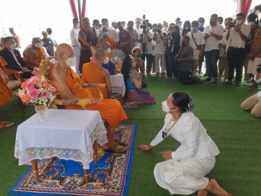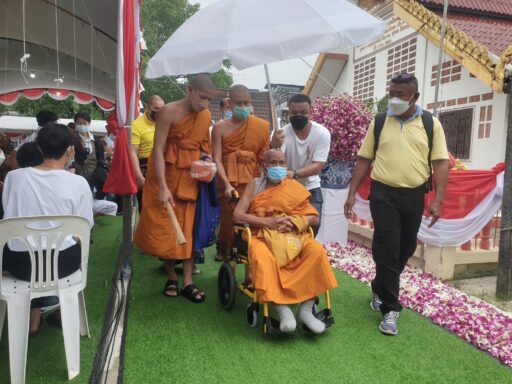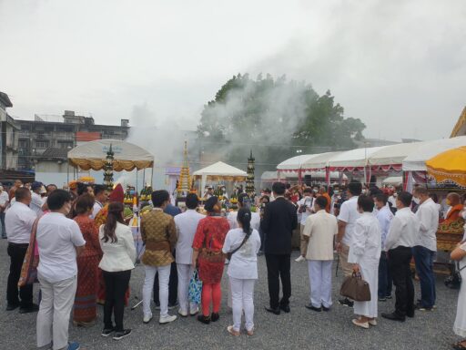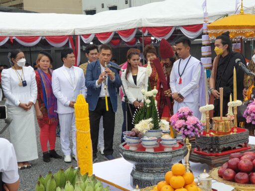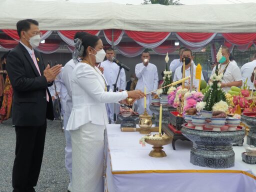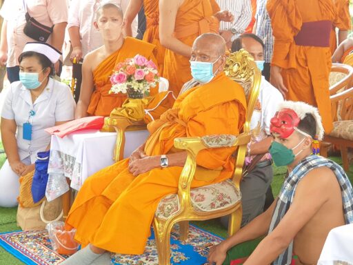 โดยในพิธีมีพระเกจิอาจารย์ชื่อดังและฆราวาสจอมขมังเวทย์ทั่วประเทศ รวมทั้งครูหมอโนราทั่วภาคใต้เดินทางมาร่วมพิธีอย่างเนื่องแน่น มีพระพรหมจริยาจารย์ วัดกระพังสุรินทร์ จ.ตรัง เจ้าคณะใหญ่ หนใต้ เป็นประธานสงฆ์ นางกนกพร เดชเดโช นายก อบจ.นครศรีธรรมราช เป็นประธานฝ่ายฆราวาสพนักงานเจ้าหน้าที่ อบจ.นครศรีธรรมราช และยังมีนายพิทักษ์เดช เดชเดโช ว่าที่ผู้สมัคร ส.ส.พรรคประชาธิปัตย์ จ.นครศรีธรรมราช พร้อมทีมงานได้ยกทีมเข้ามาร่วมในพิธีอย่างต่อเนื่อง ทำให้บรรยากาศภายในวัดคลาคล่ำไปด้วยสาธุชน จนวัดแทบแตกก็ว่าได้ ท่ามกลางมาตรการควบคุมป้องกันโควิดอย่างเคร่งครัด โดยทุกคนจะต้องสวมหน้ากากอนามัยตลอดเวลา และตรงทางเข้ามีเจ้าหน้าที่ อสม.คอยตรวจวัดอุณหภูมิ และให้ทุกคนร่วมลงชื่อไว้เป็นหลักฐาน