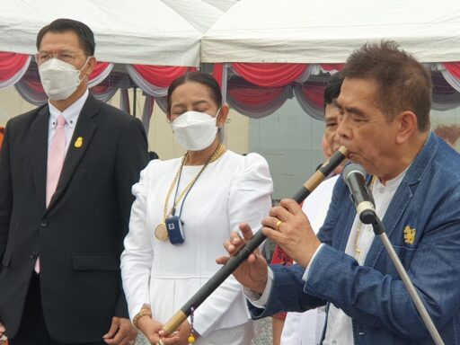 สำหรับการประกอบพิธีพราหมณ์ในการเททอง ฯเพื่อบวงสรวงเทพยดา มี นางกนกพร เดชเดโช นายก อบจ.นครศรีธรรมราช และ นายสมหมาย เอี่ยมสอาด ประจำสำนักเลขาธิการนายกรัฐมนตรี ร่วมเป็นประธานฝ่ายฆราวาส จุดเทียนบูชาพระรัตนตรัยและเทวดาฟ้าดิน จากนั้นอาจารย์ธนิสร์ ศรีกลิ่นดี ศิลปินแห่งชาติ เปล่าขลุ่ยบวงสรวงเสียงไพเราะจับใจ นอกจากนี้ยังมีนักร้องระดับตำนานเมืองไทยร่วมขับร้องเพลงที่เคยได้รับรางวัลพระราชทานขับกล่อมพร้อมเสียงเป่าขลุ่ยอาจารย์ธนิสร์ อีก 2-3 เพลงอีกด้วย