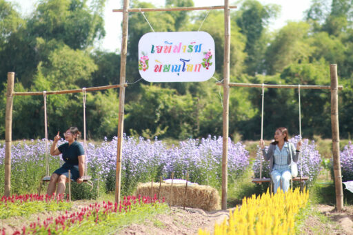 จุดเริ่มต้นในการทำทุ่งดอกไม้คือ เมื่อปีก่อนได้มีโอกาสไปเที่ยวชมทุ่งดอกไม้แนวนี้ แล้วเห็นว่าทุ่งดอกไม้ของเขามีทำเลลักษณะใกล้เคียงกับฟาร์มของเรามาก ทั้งสภาพอากาศต่าง ๆ ก็ใกล้เคียงกัน และเห็นว่าปัจจุบันนี้เกษตรเชิงท่องเที่ยวกำลังไปได้ดี จึงอยากลองปลูกดอกไม้ขึ้นมาบ้าง พอกลับมาจึงเริ่มศึกษาดอกไม้แต่ละประเภท ทั้งดอกมากาเร็ต ดอกซีโลเซีย และดอกคอสมอส ว่าดอกไม้แต่ละประเภทปลูกอย่างไร ดูแลอย่างไร ระยะเวลาบานช่วงไหน จึงเริ่มเพาะกล้า และลงแปลงดอกไม้ตามช่วงเวลาเพื่อให้ดอกไม้บานสะพรั่งพร้อม ๆ กันในช่วงฤดูการท่องเที่ยวฤดูหนาวนี้ ซึ่งตอนนี้ทั้งดอกมากาเร็ตก็บานสะพรั่งเป็นสีม่วงพาสเทลสลับกันทั้งสีเข้มและสีอ่อนอย่างสวยงาม ส่วนดอกซีโลเซียก็ชูช่อสีแดงเข้ม สีชมพู และสีเหลืองสดใสสลับกันสวยงามเป็นอย่างมาก