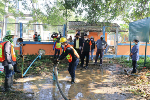 เบื้องต้นในวันนี้เจ้าหน้าที่ของ อบจ.พิษณุโลก ได้ดำเนินการเป่าล้างทำความสะอาดดินตะกอนภายในบ่อบาดาลออกทั้งหมด เพื่อให้น้ำมีปริมาณน้ำเพียงพอต่อการใช้อุปโภคบริโภคบรรเทาปัญหาความเดือดร้อนเบื้องต้นให้แก่ราษฎร จากนั้น ว่าที่ร้อยตรี อิทธิพล รองนายก อบจ.พิษณุโลก ได้ติดตามการดำเนินงานของเจ้าหน้าที่กองช่าง ที่นำรถดูดสิ่งปฏิกูลเข้าฉีดล้างทำความสะอาดท่อระบายน้ำภายในหมู่บ้านวัดจุฬามณี ซอย 3 หมู่ที่ 2 ต.ท่าทอง อ.เมืองพิษณุโลก ร่วมกับเจ้าหน้าที่เทศบาลตำบลท่าทอง เนื่องจากพบว่าท่อระบายน้ำภายในหมู่บ้านมีดินตะกอนอุดตันจำนวนมาก เมื่อเกิดฝนตกหนักส่งผลให้ไม่สามารถระบายได้ทัน จนเกิดน้ำท่วมขังและส่งกลิ่นเน่าเหม็น อีกทั้งยังเป็นแหล่งเพาะพันธ์ยุงลาย