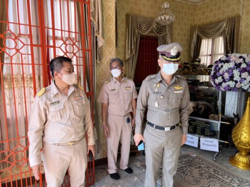 จากการสอบถาม นายชิววัฒน์ ชัยแก้ว อายุ 60 ปี ผู้ดูแลศาล เปิดเผยว่า ตนเองทำงานดูแลศาลสมเด็จฯ ร่วม 10 ปีแล้ว ไม่เคยถูกโจรย่องเบาลักทรัพย์และทุบตู้รับเงินบริจาคมาก่อนเลย ซึ่งครั้งนี้ถือเป็นครั้งแรกที่คนร้ายกล้าลงมือทุบตู้บริจาคทั้ง 3 ตู้ ซึ่ง 2 ตู้นั้นเป็นตู้ของมูลนิธิสมเด็จพระนเรศวรมหาราชเพื่อการศึกษาสำหรับเด็กและเยาวชน จ.พิษณุโลก และของศาลสมเด็จฯ 1 ตู้ ปกติเจ้าหน้าที่จะเปิดตู้ทุกเดือนตามที่คณะกรรมการกำหนดเอาไว้เพื่อนำเงินบริจาคไปเป็นทุนการศึกษาของเด็กนักเรียนในจังหวัดพิษณุโลก ทุกวันจะปิดประตูรั้วด้านหน้าแต่เมื่อคืนเปิดไว้ เพราะจะมีการจัดงานเปิดสะพานพระราชวังจันทน์เช้าวันนี้ สำหรับยามหรือ รปภ. นั่นมีเพียง 1 คนเท่านั้น ดูแลรอบ ๆ พระราชวังจันทน์ทั้งหมด ที่สำคัญกล้องวงจรปิดเฉพาะส่วนของศาลสมเด็จฯ นั้น ไม่มีแม้แต่ตัวเดียว